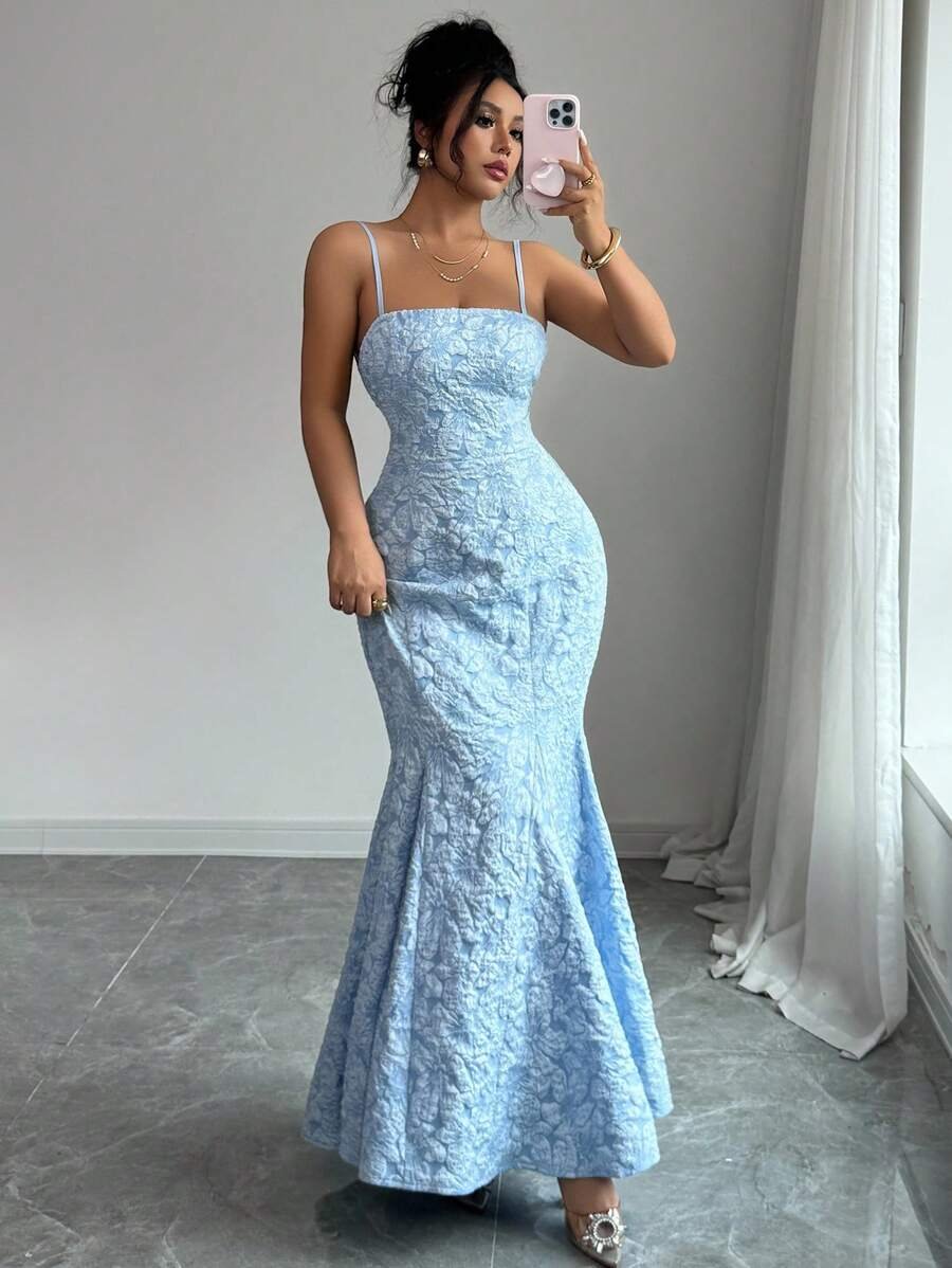 Vestido ajustado de malla con tira cruzada de cuello halter