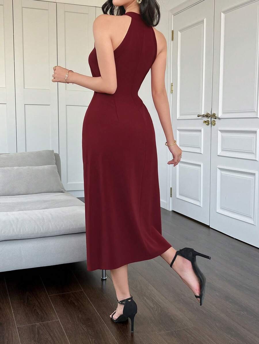 Vestido ajustado de malla con tira cruzada de cuello halter