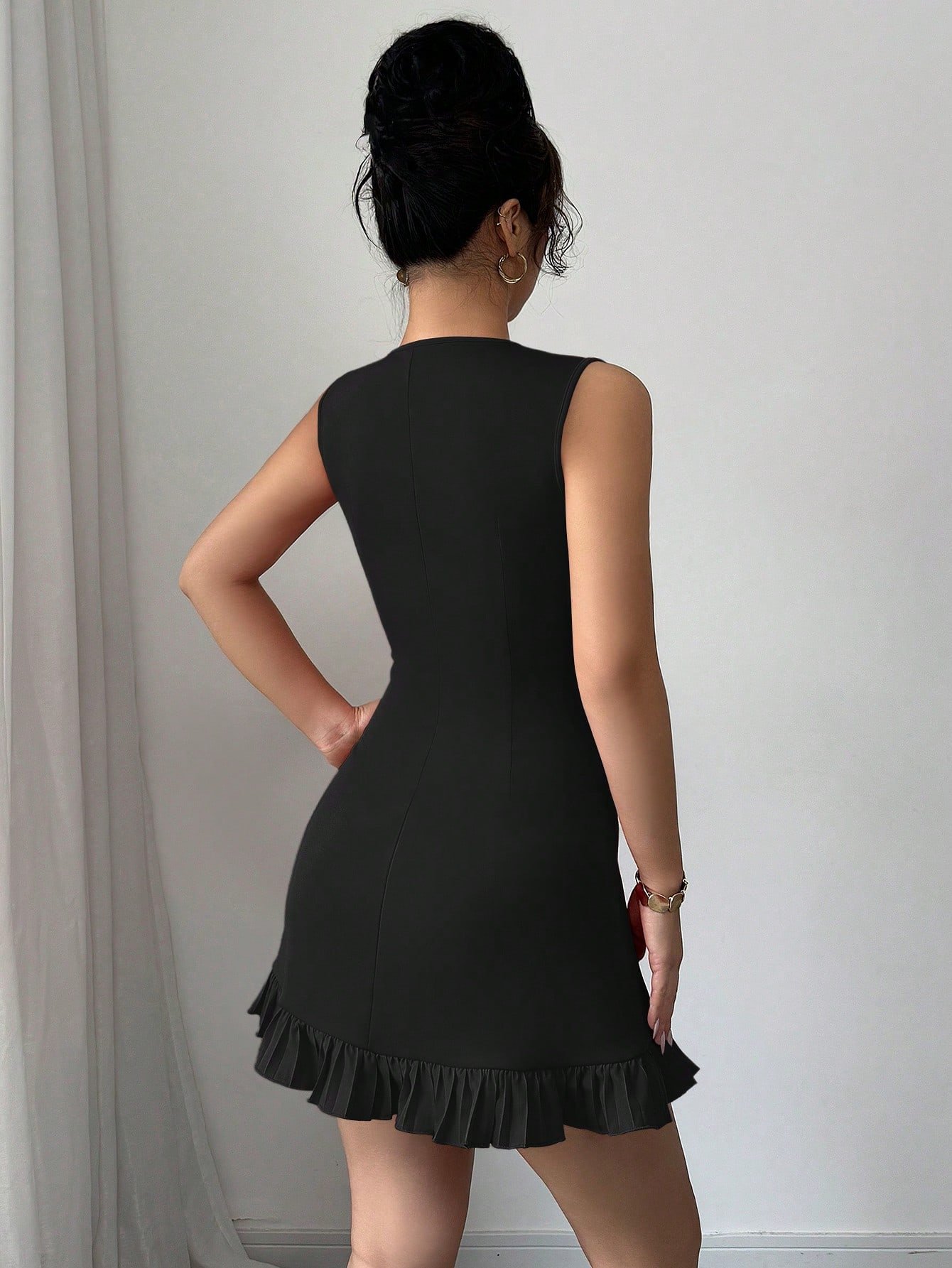 Vestido mini elegante con cuello redondo y diseño de lazo para mujeres