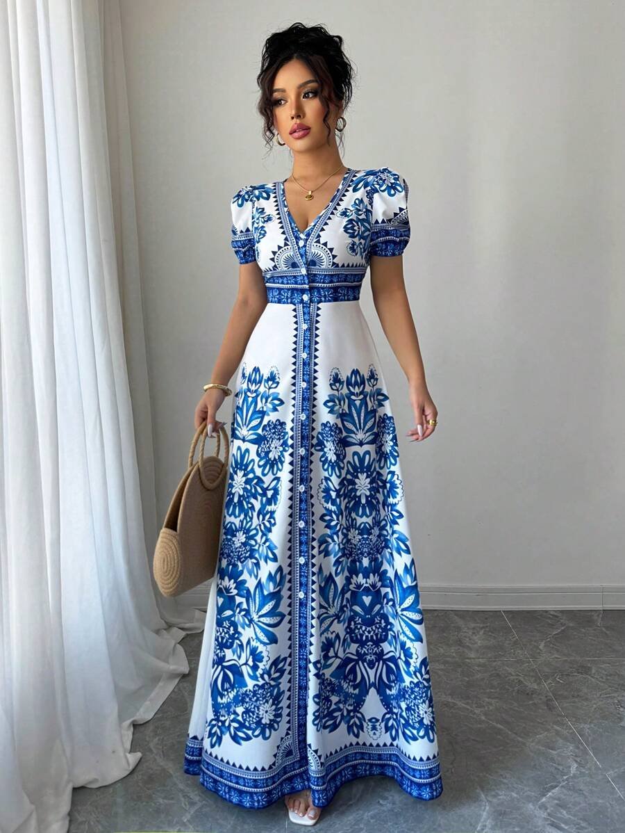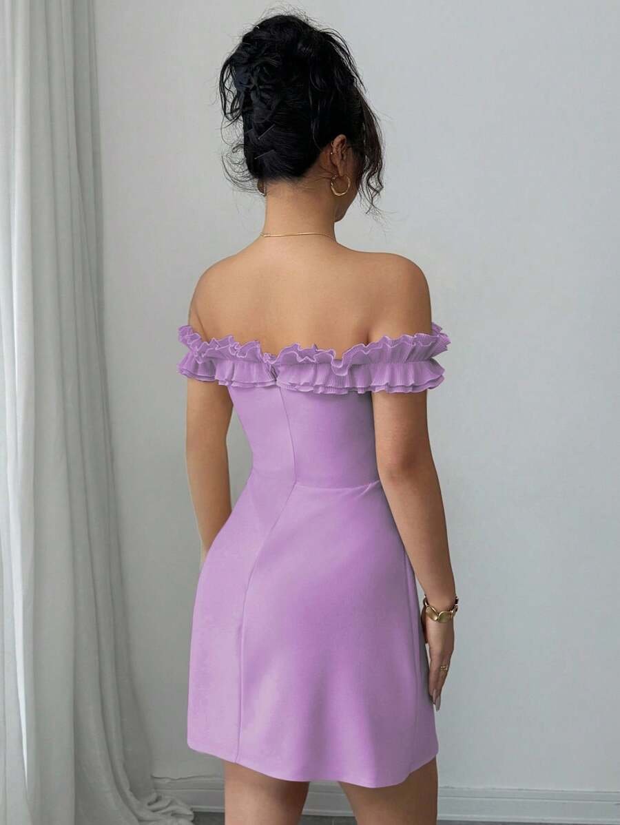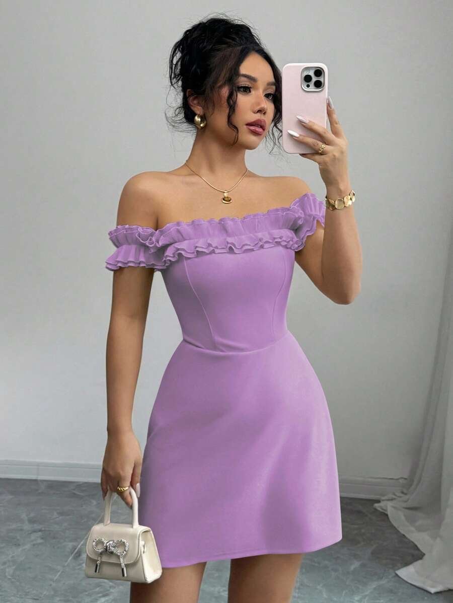 Vestido romántico con cuello de volantes y hombros descubiertos