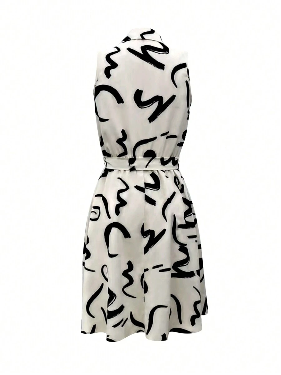 Vestido sin mangas con estampado abstracto y botones delanteros