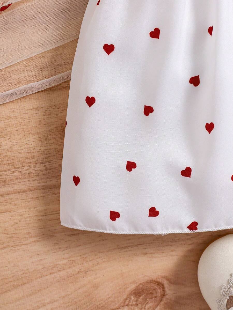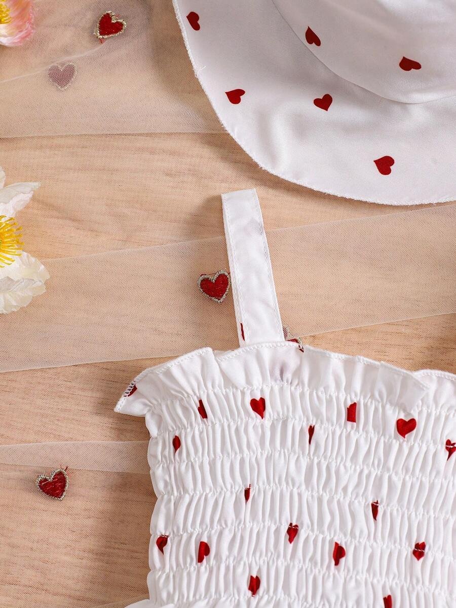 Vestido sin mangas de impresión de corazones y diadema de lazo