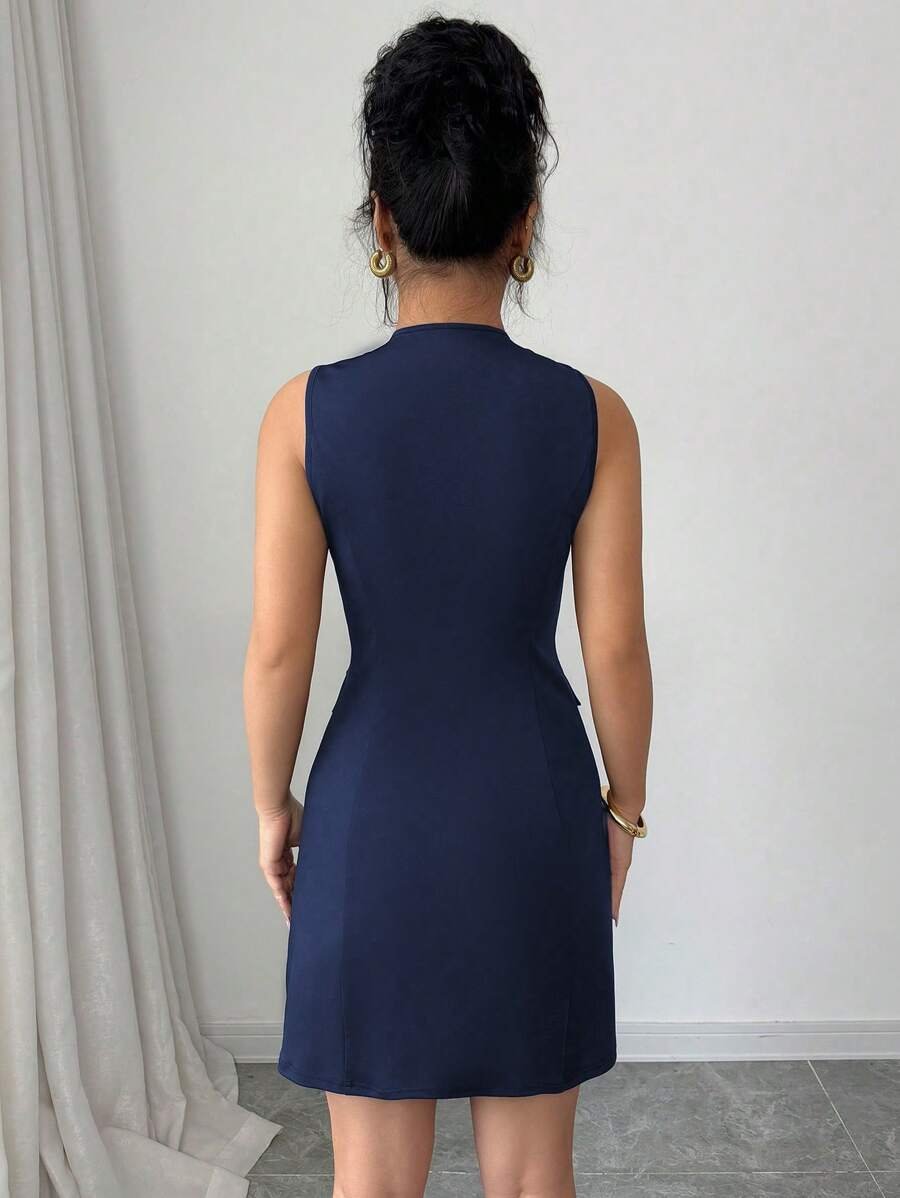 Vestido sin mangas elegante y de moda con botones delanteros y cintura
