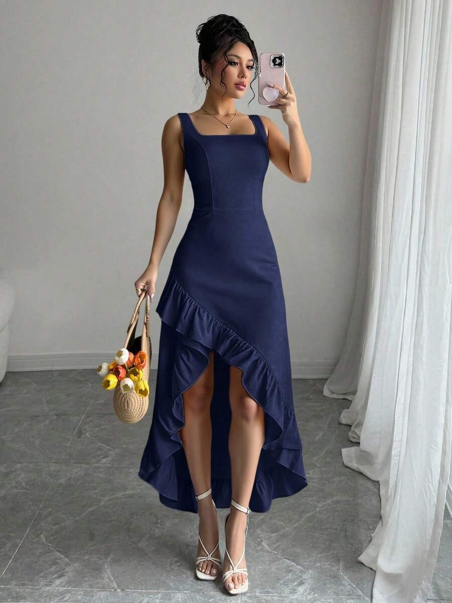 Vestido de terciopelo ajustado con tirantes de cadena