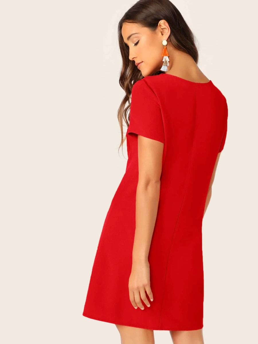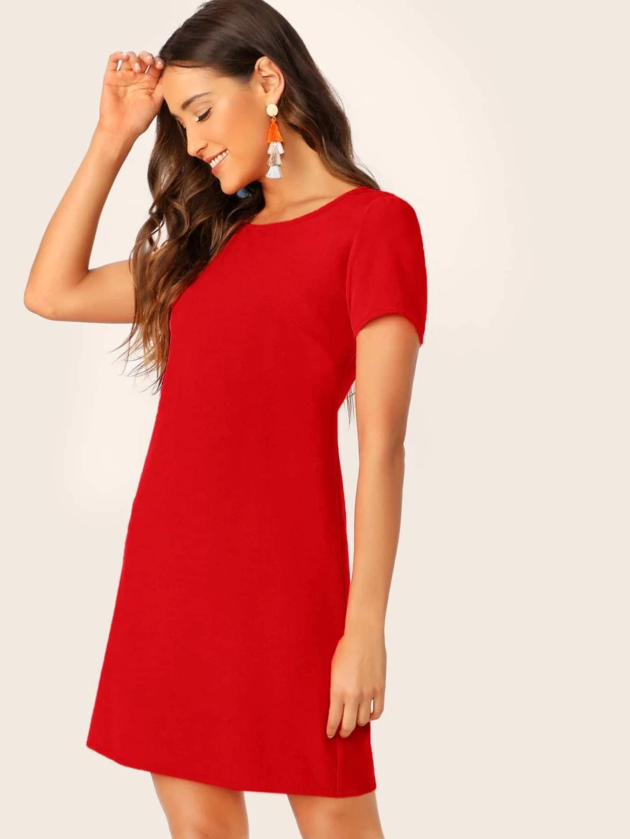 Vestido túnico unicolor de cuello redondo