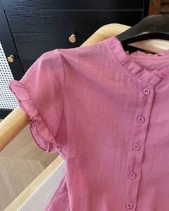 Vestido camisa de botones con cintura ceñida y mangas enrollada