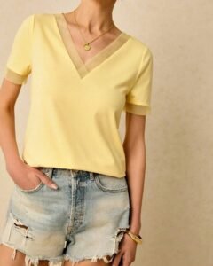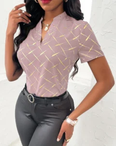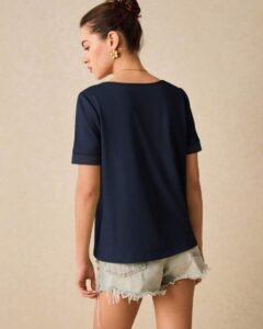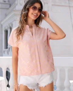 Blusa unicolor de manga corta y casual