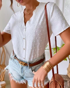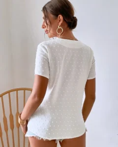 Blusa de mujer con Top con acabado de puntitos suizos y dobladillo festoneado