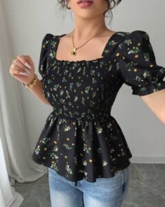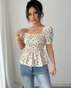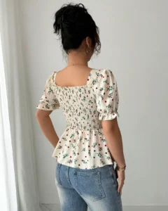Blusa elegante de ajuste ceñido con estampado floral
